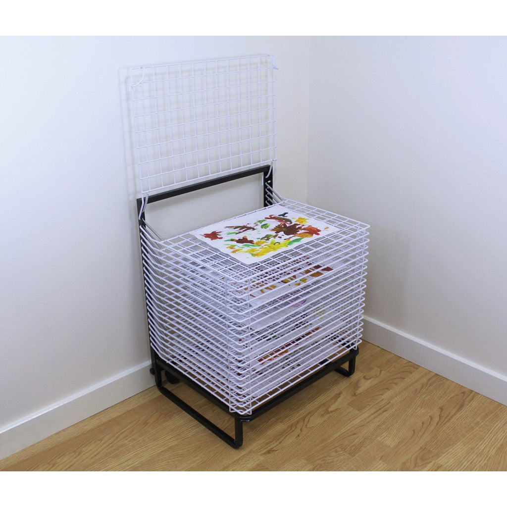 This drip free paint dryer is made from top quality steel and features spring loaded racks and separator bars. Suitable for A2 paper. Spring loaded drying rack is supplied assembled.